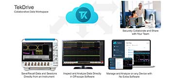 TekDrive is a collaborative test and measurement workspace wherein users can upload, store, organise, search, download, and share files from any connected device.