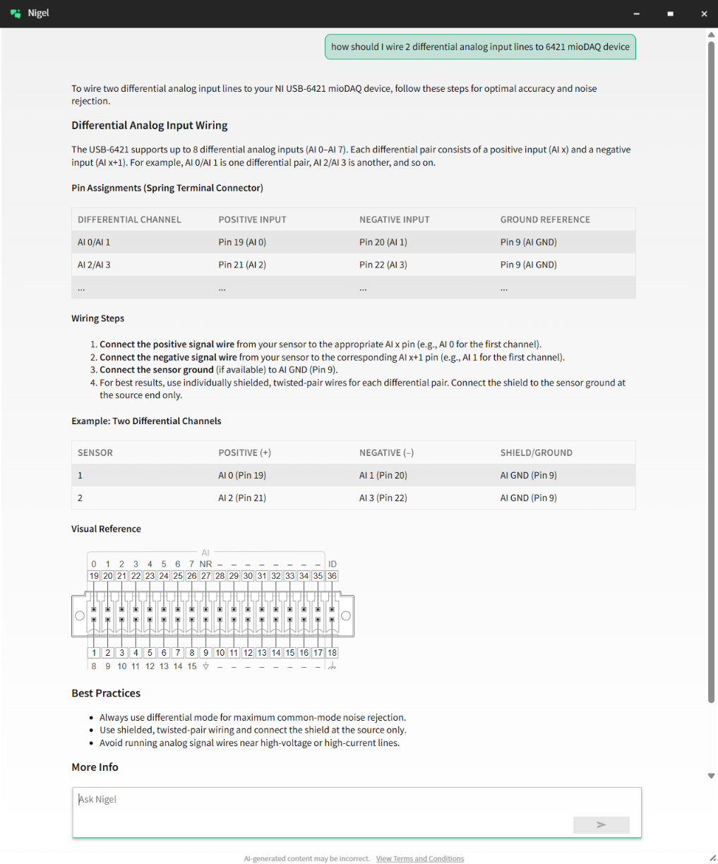 Sie kennen bereits die Leistungsfähigkeit von LabVIEW und NI DAQ – aber wussten Sie schon, dass der neue Nigel AI Advisor hervorragend Fragen zu NI-Hardware beantworten kann?